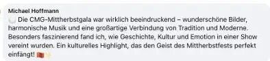 德语网友霍夫曼:这场由中央广播电视总台举办的中秋晚会真的令人印象深刻——画面唯美,音乐和谐,将传统与现代完美融合。最令人着迷的是,整场演出把历史、文化与情感巧妙地结合在一起,完美展现了中秋节的精神!