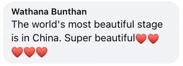 网友Wathana Bunthan:世界上最美的舞台在中国,超级漂亮!❤️❤️❤️❤️❤️